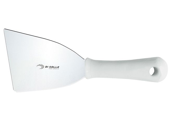 Espátula Reta, com cabo branco, em aço inox, ideal para restaurantes e confeitarias, maior resistência, durabilidade do fio e alto poder de corte para qualificar a sua produção. Uma linha completa de espátulas e batedores profissionais para qualificar a sua produção. As espátulas profissionais da Di Solle são fabricadas em aço inox 420 e possuem tratamento térmico dando maior robustez (não permitindo que a mesma entorte) e não riscando as porcelanas. Além disto, são polidas em alto brilho.